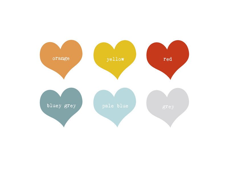 This print is personalised with names and a date, which will be printed in a typewriter style font in white in a coloured heart. You can also choose the colour of the heart - the colours are all picked carefully from the print itself.
